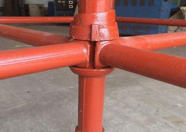 The drop forged rosettes of cuplock scaffolding are welded on standard every 500mm, which is international standard. Each rosette have 8 holes, including 4 large holes and 4 small holes. so cuplock scaffolding allow the legers and standards are not at right angle. which means the ringlock scaffolding can be used for any shape of building.